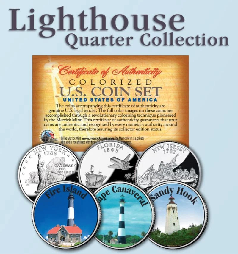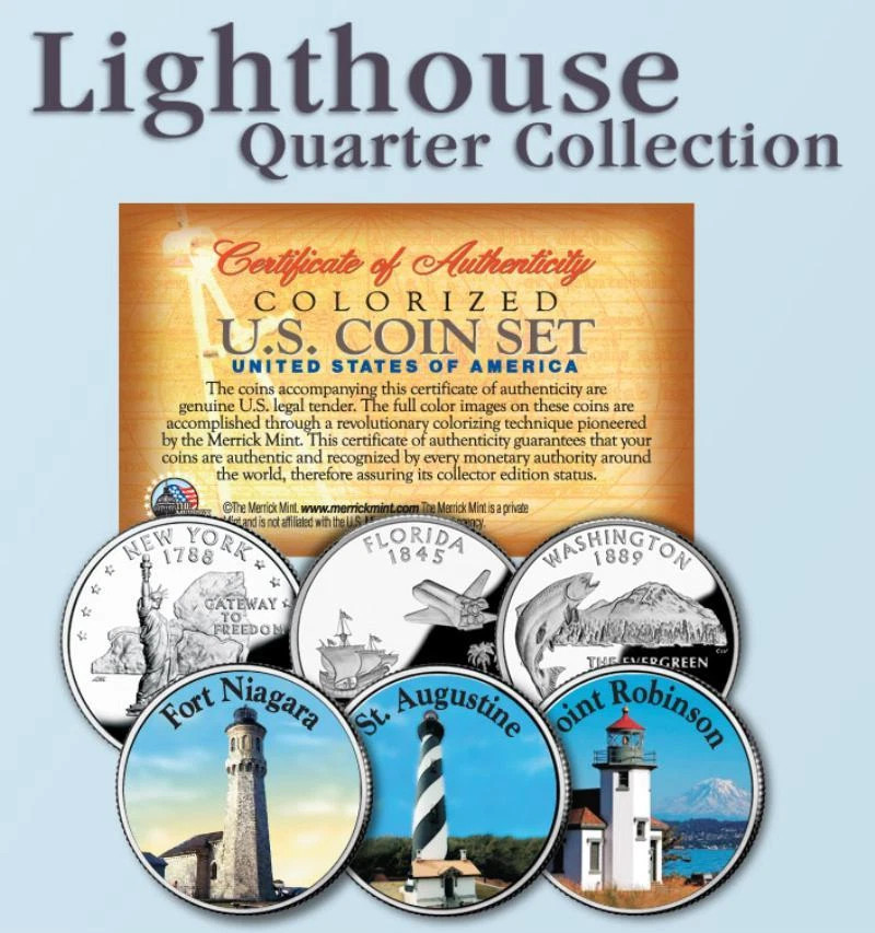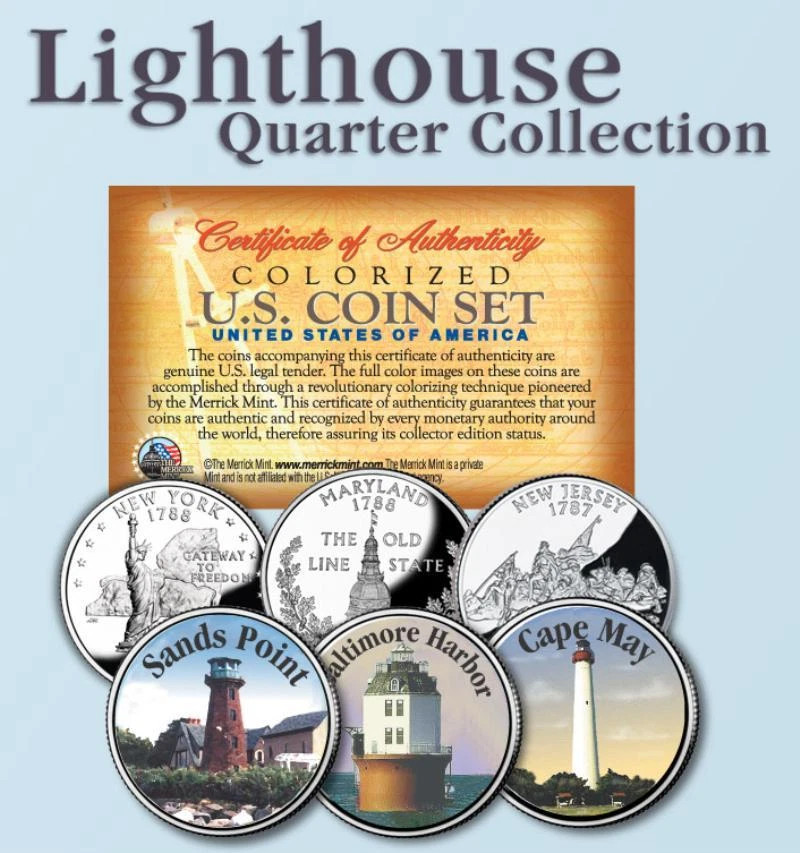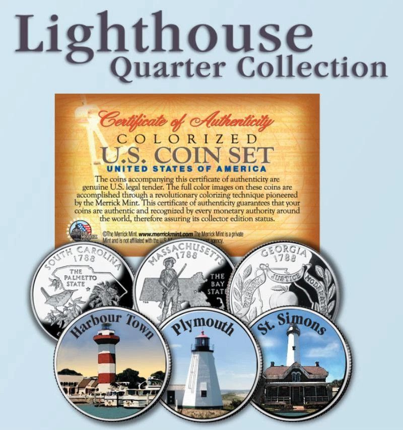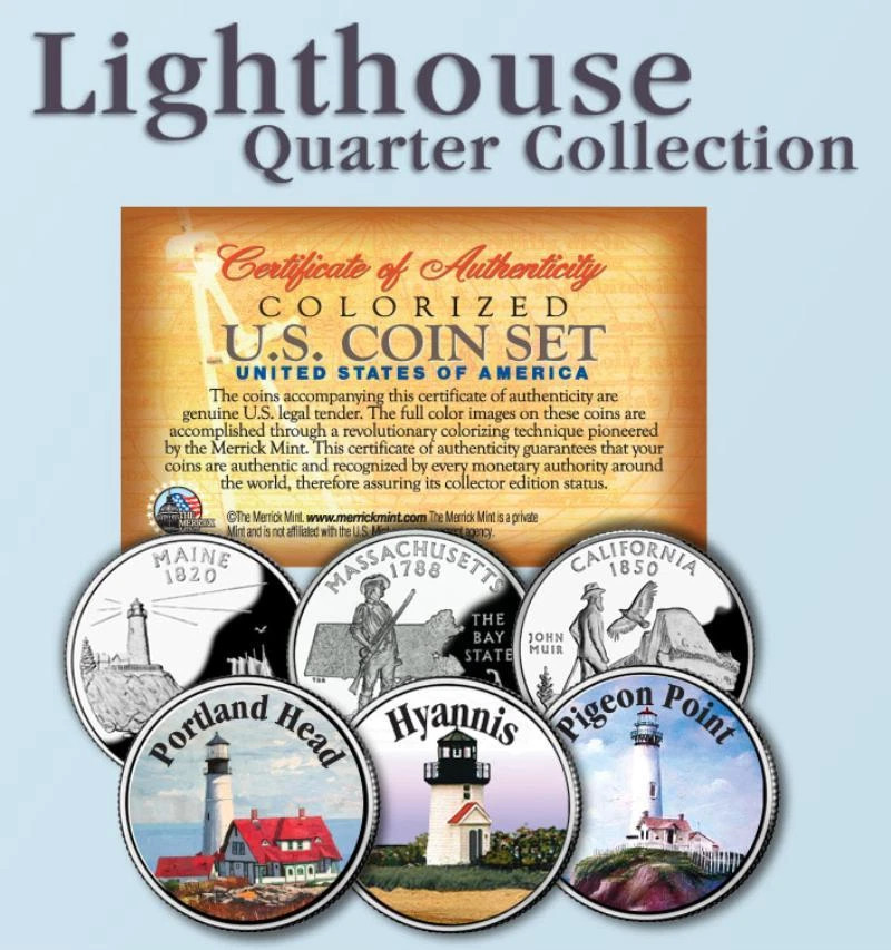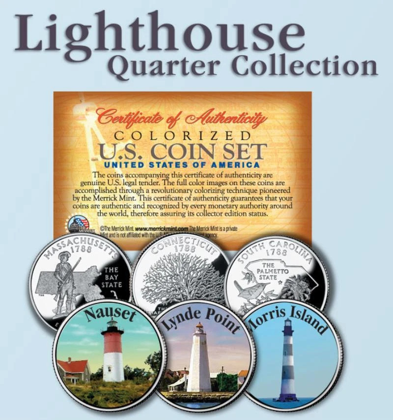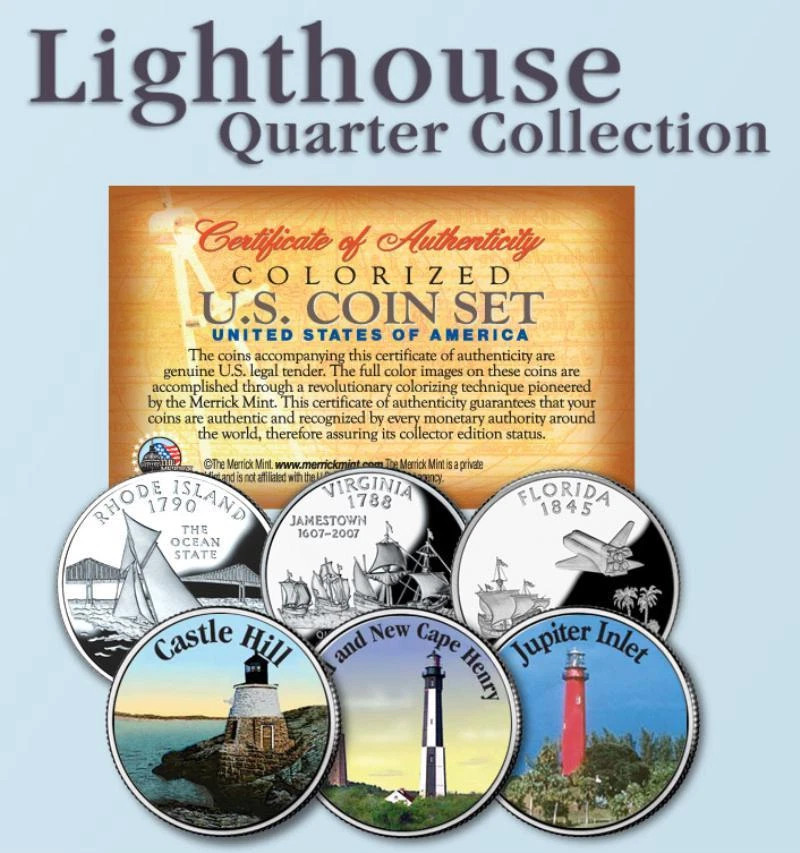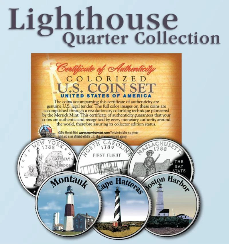 - These coins all began as statehood quarters, to which the mints artists have added colorization, honoring the most interesting and important lighthouses in the United States. Recalling America's great maritime heritage, these lighthouse quarters make great collectibles and gifts.